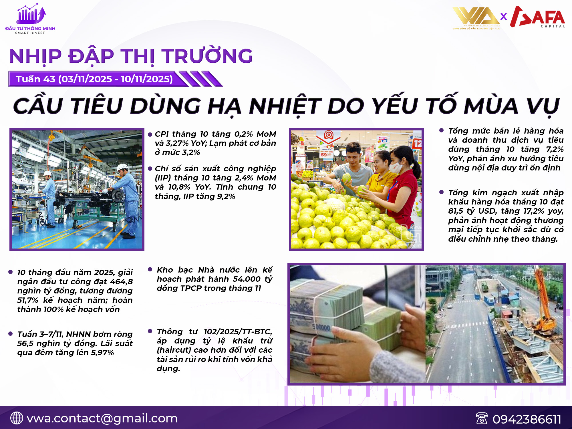 Nhịp đập thị trường tuần 43 (03/11/2025 – 10/11/2025): Cầu tiêu dùng hạ nhiệt do yếu tố mùa vụ